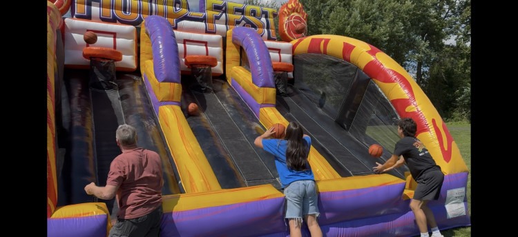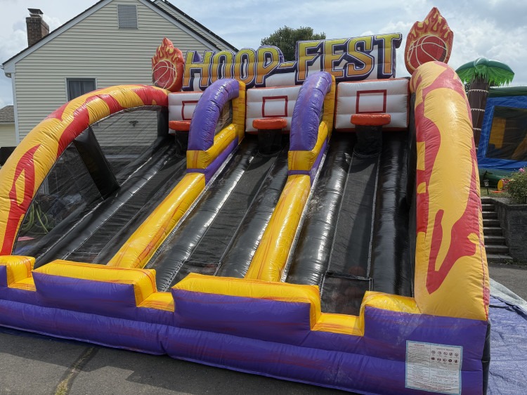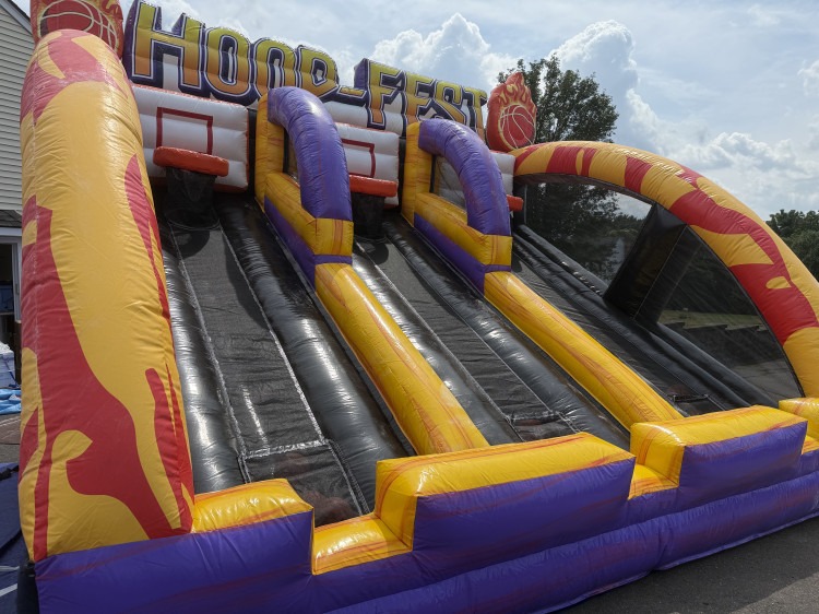 The TRIPLE THREAT SHOOTOUT BASKETBALL game is sure to add lots of fun to any party or event, backyard parties, basketball season parties, indoor events you name it. Gather up your friends and see who has what it takes to sink all the shots first. Play for prizes, fun, or bragging rights. This game is sure to keep all you guests busy for hours. Shoot from up close, or back up farther to see who can master the 3-pointer...even play some horse. Possibilities are endless with this awesome game. Basketballs included.